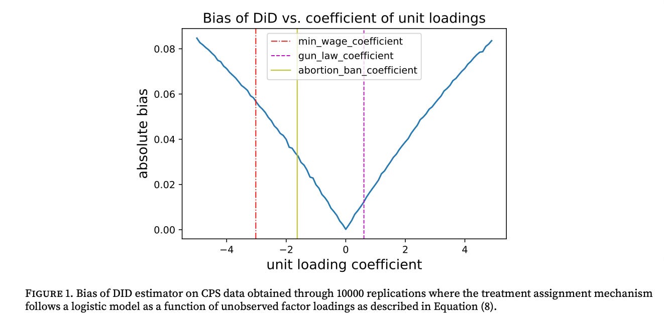 On this toy panel, that simple DiD comes out around 5.90, far above the true 2.60. That is the interactive fixed effect showing up.